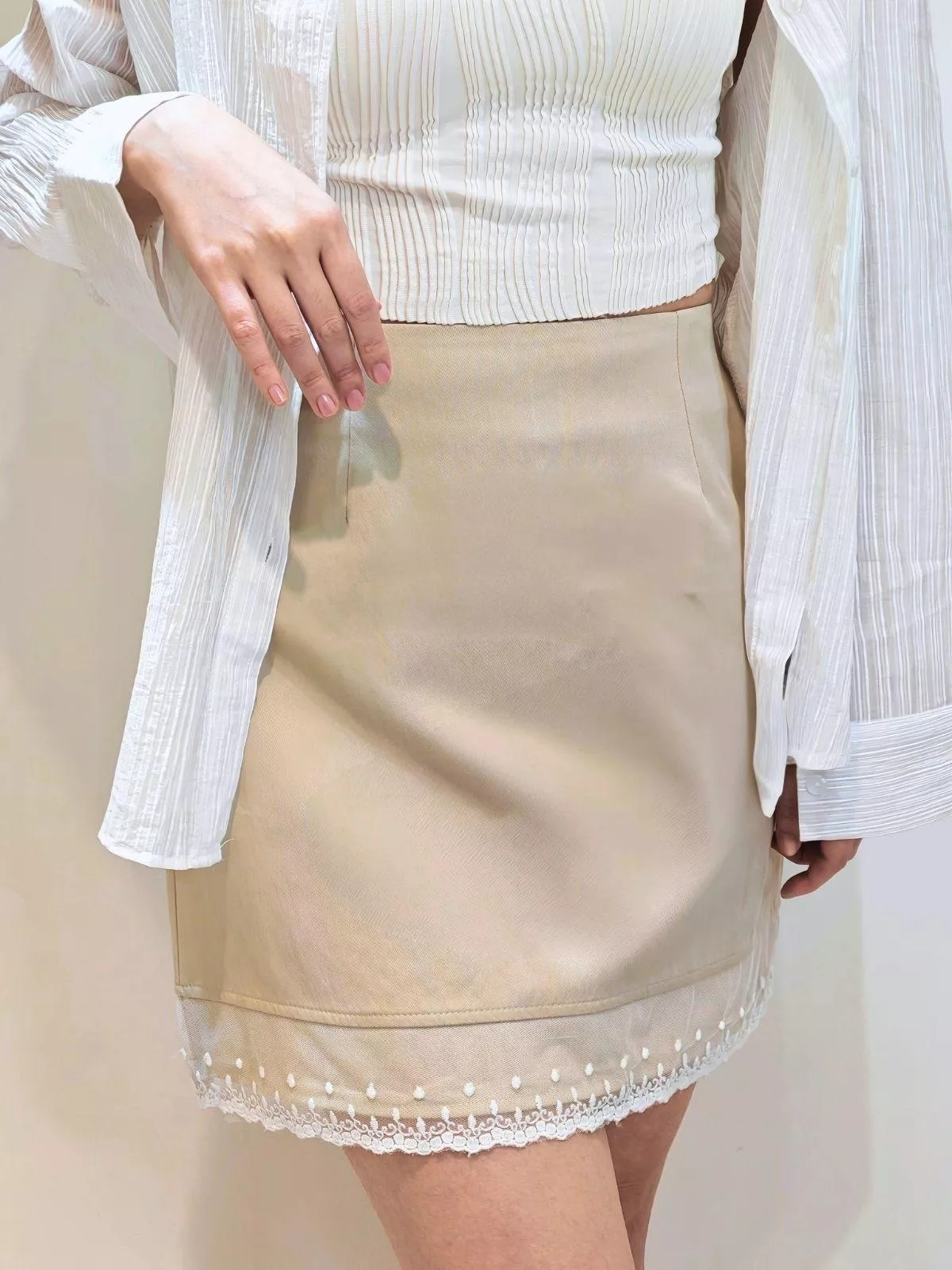 下擺的蕾絲拼接,穿上瞬間精緻感滿分,微A字剪裁顯腿長。