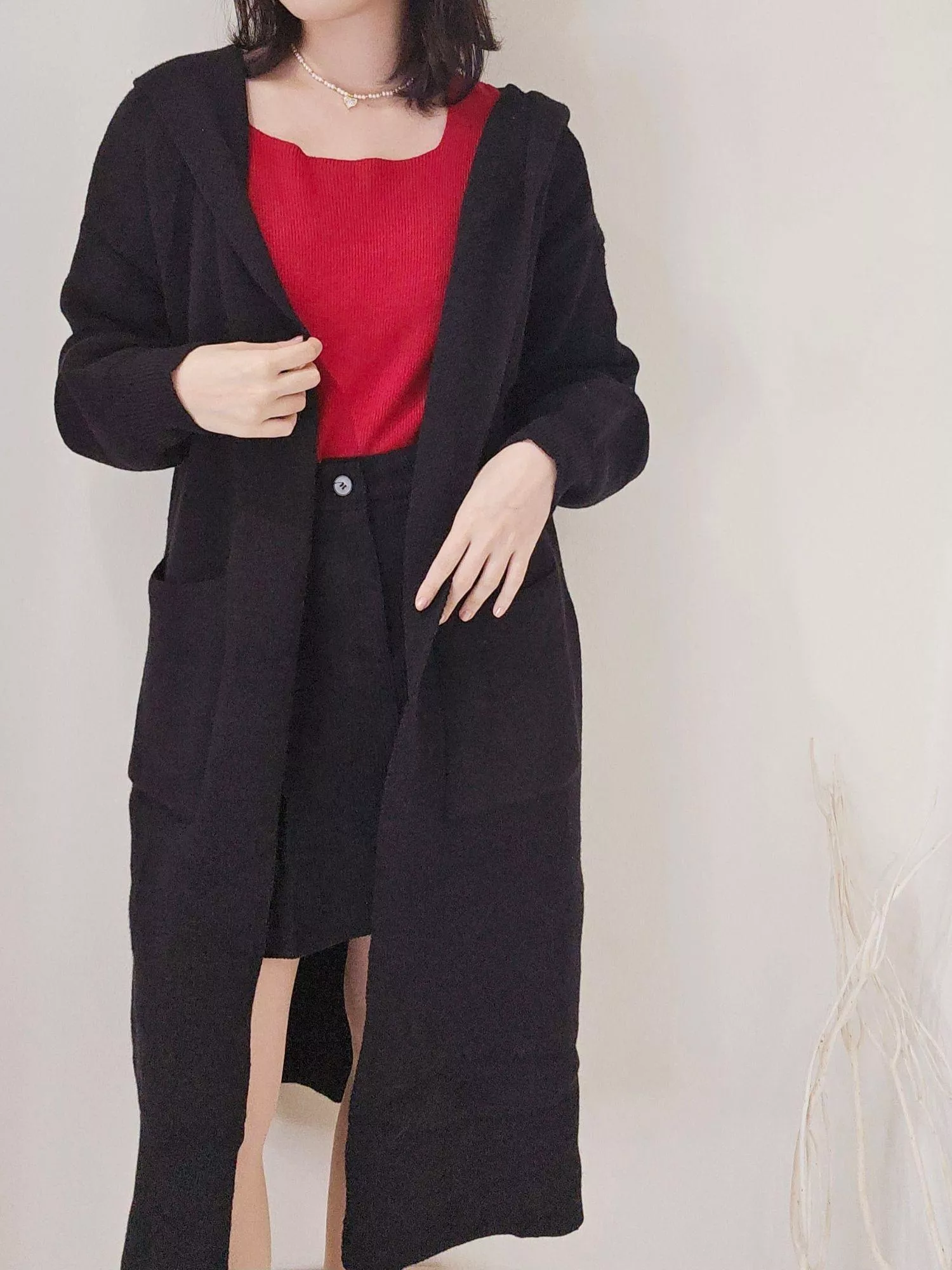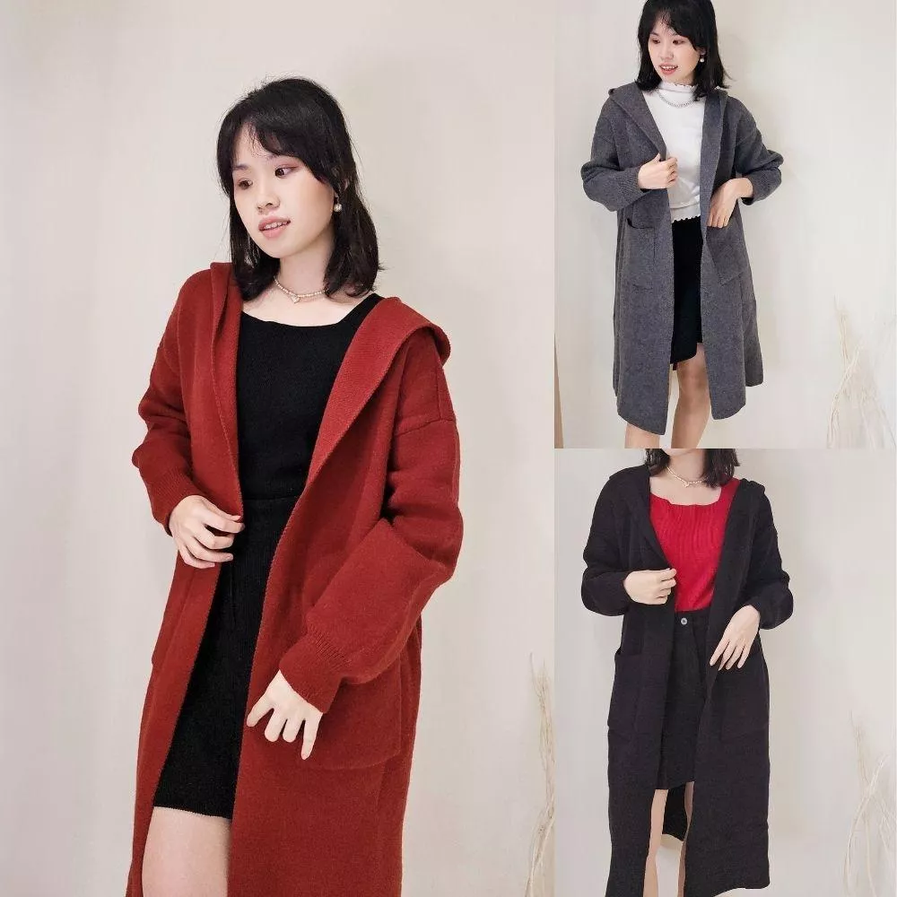 《織夢行者》連帽針織長外套 (紅.灰.黑色)