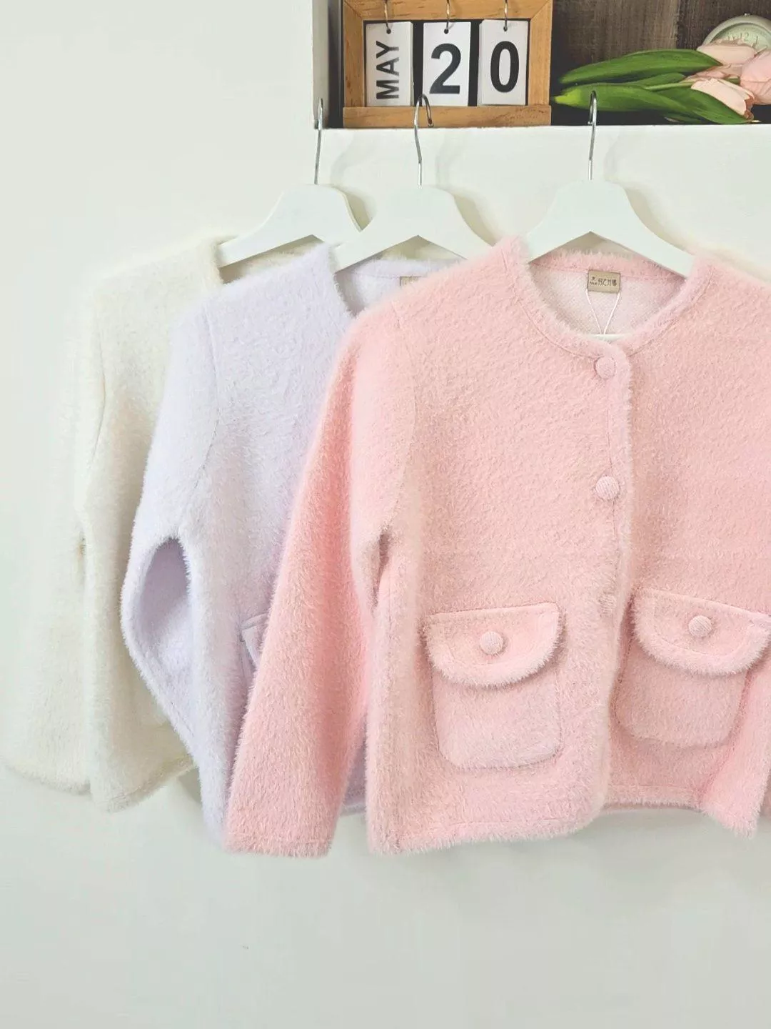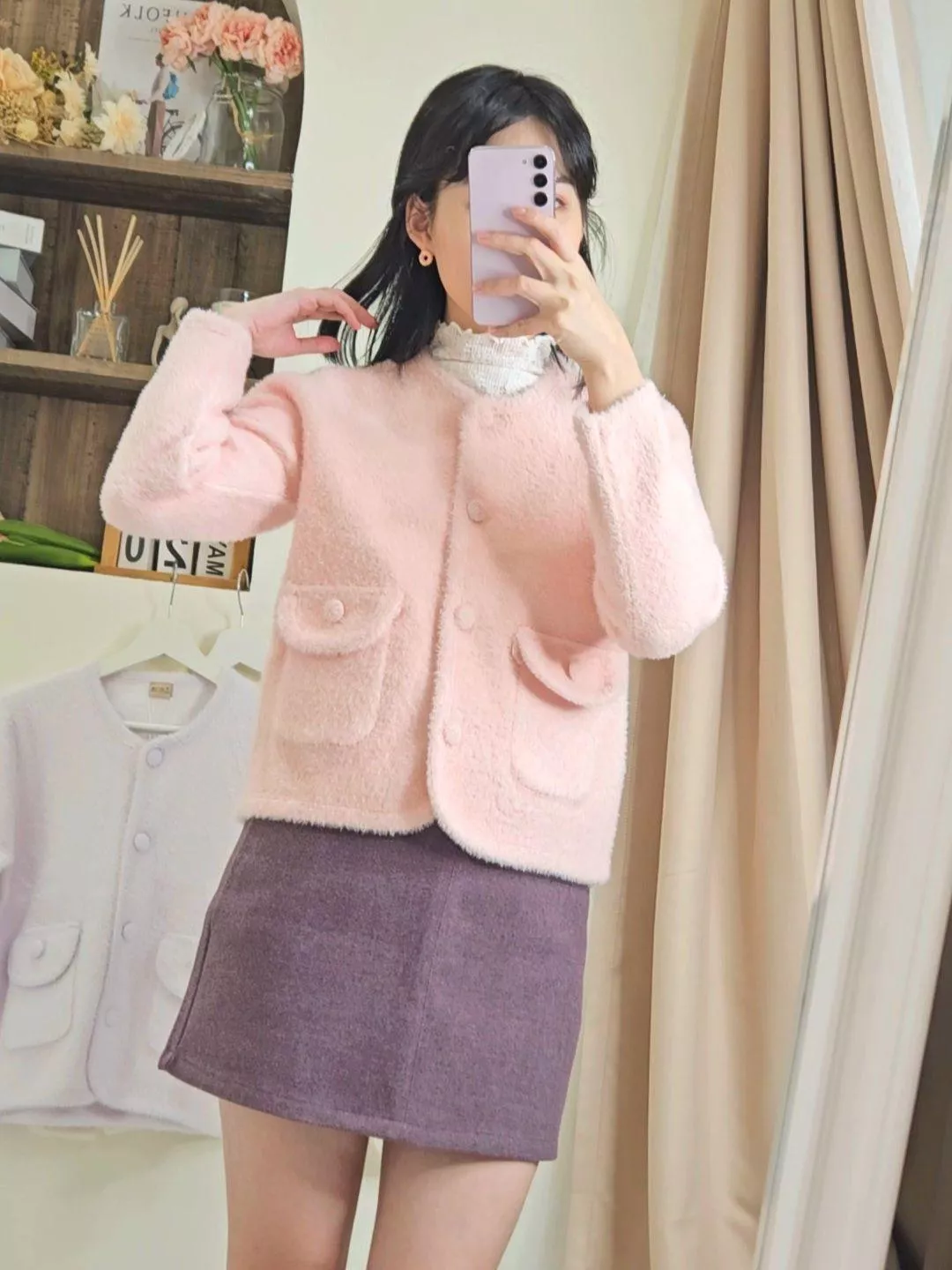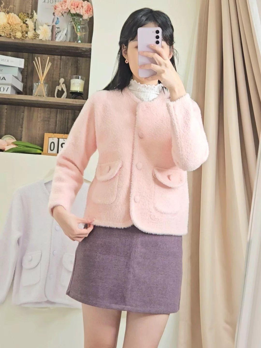 馥郁柔影.長袖絨毛外套 (乳白色.紫色.藍色.粉色)