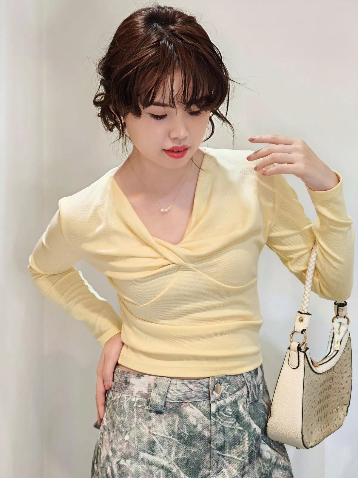 獨特扭結 V 領:修飾頸部線條,展現鎖骨的微性感魅力。