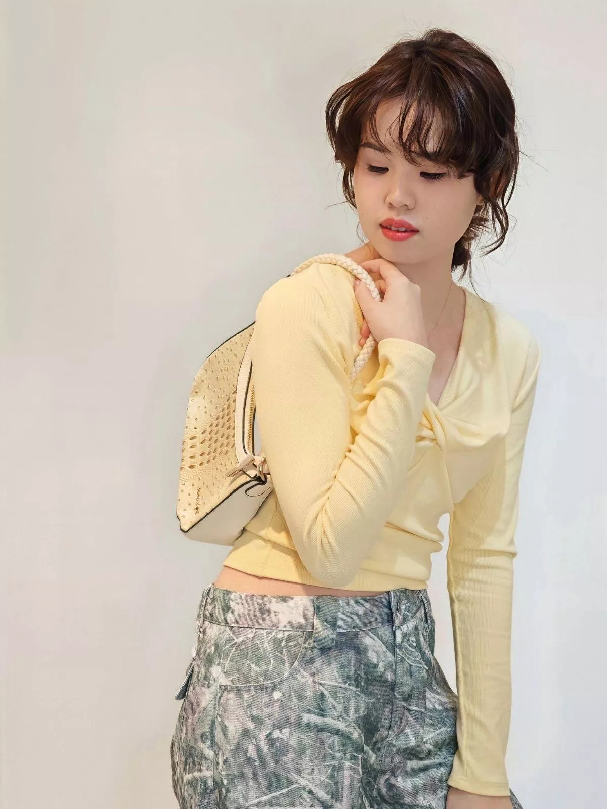 療癒系奶油黃:襯托膚色亮白,營造春日般的清新氛圍。