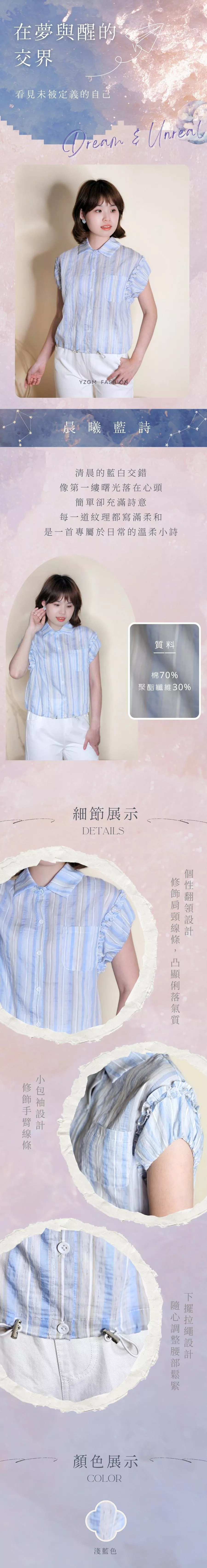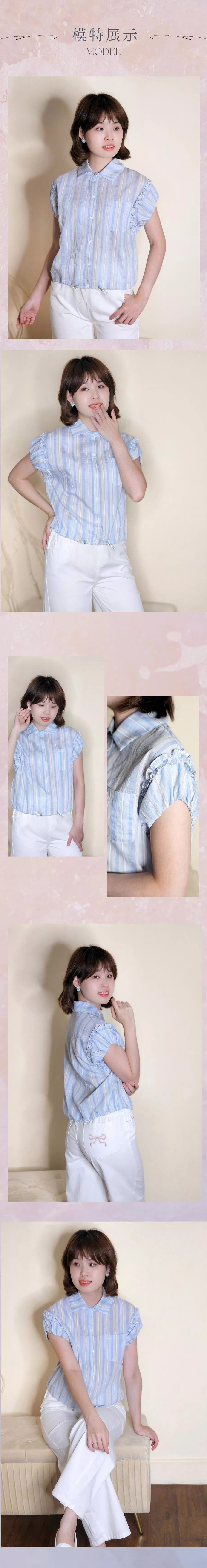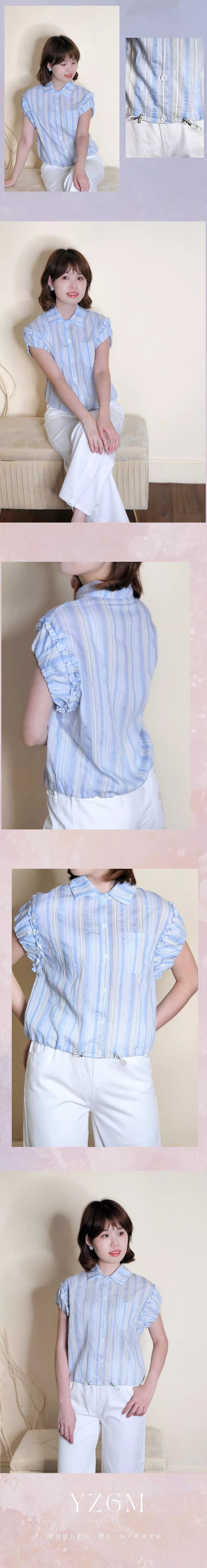 晨曦藍詩 - 條紋短袖棉質襯衫