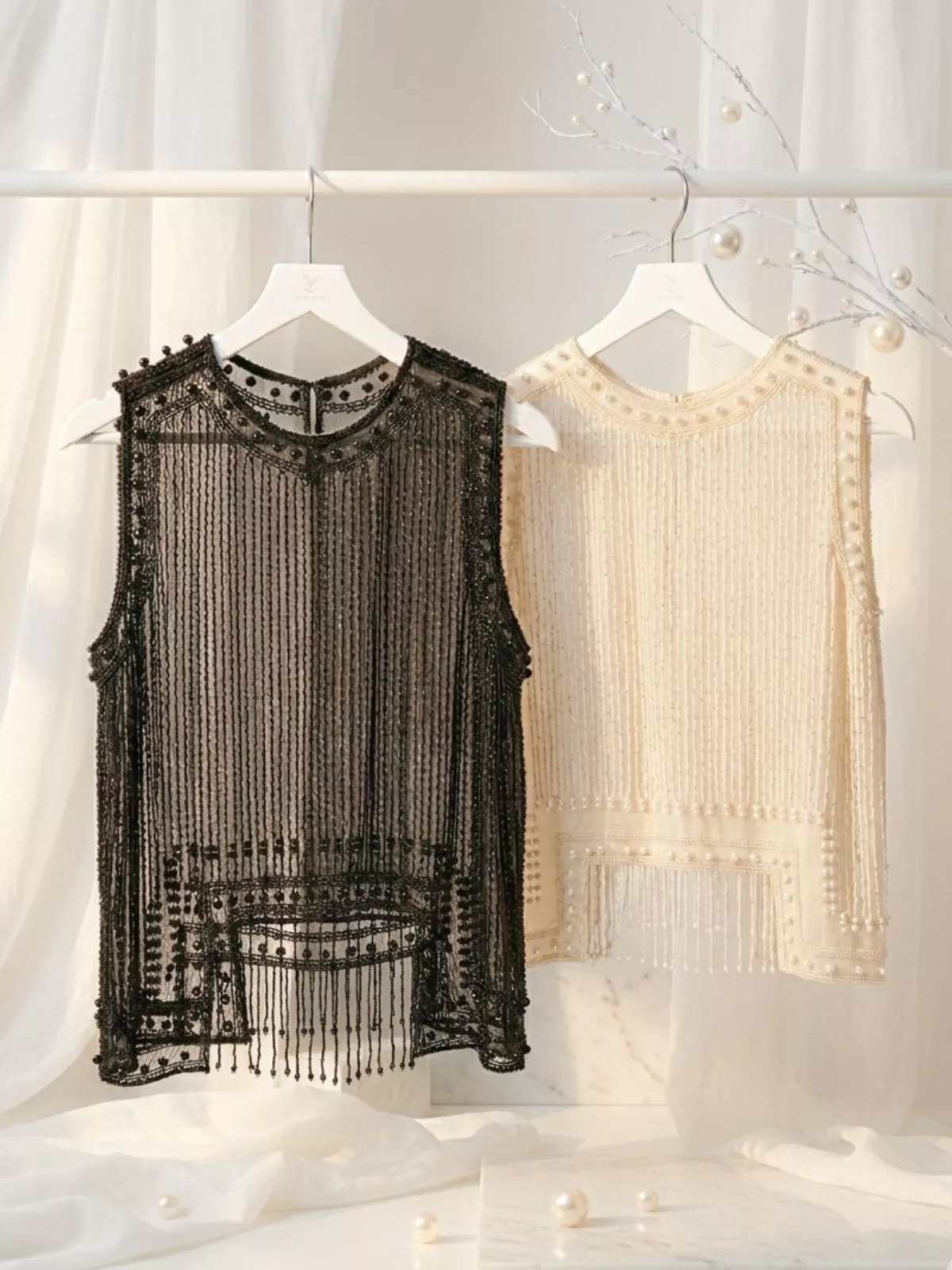 《夜宴流光》流蘇罩衫 (杏/黑色)