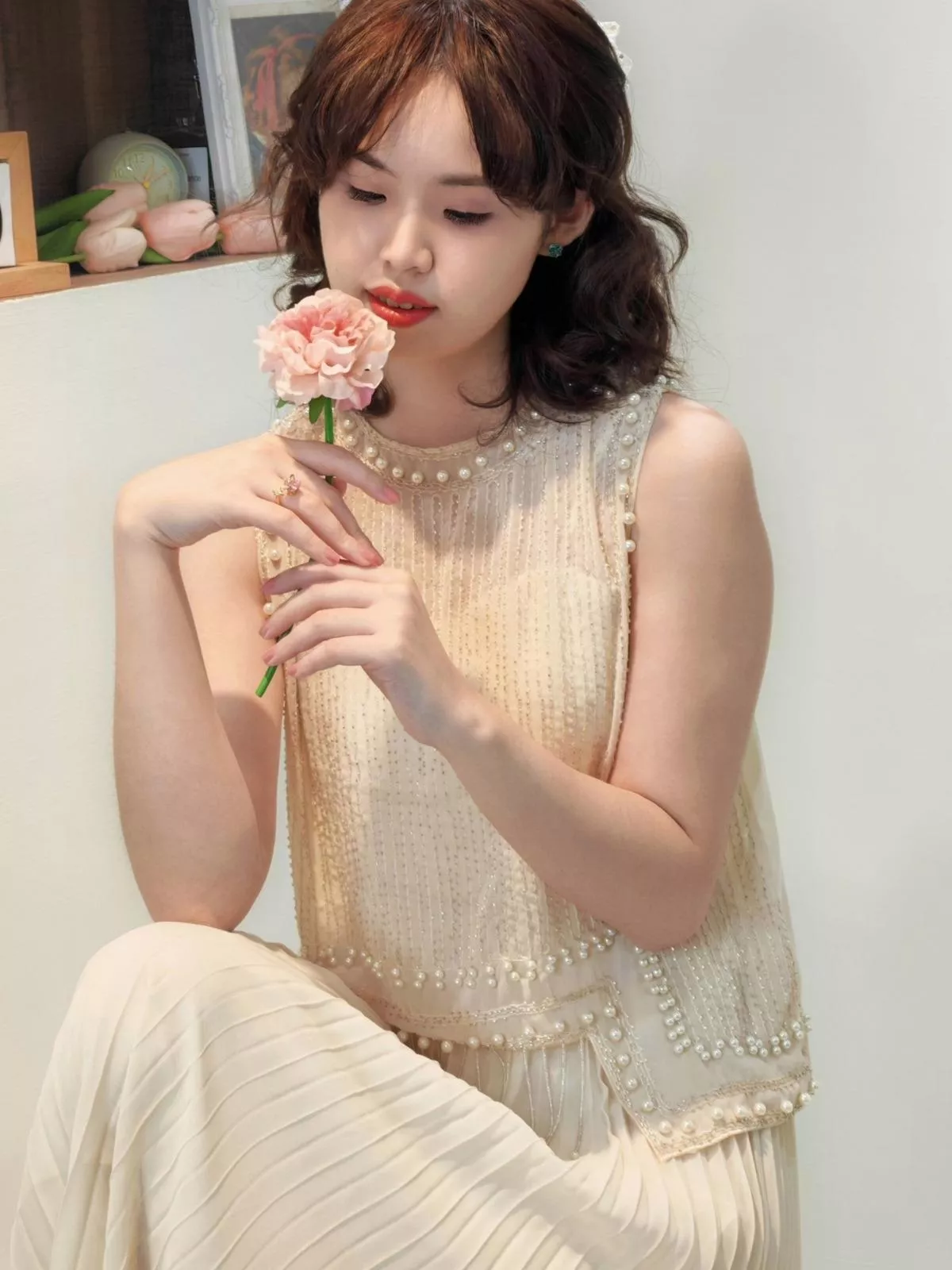 內搭:海潮肌理細肩帶內搭上衣 貨號SJ240707
