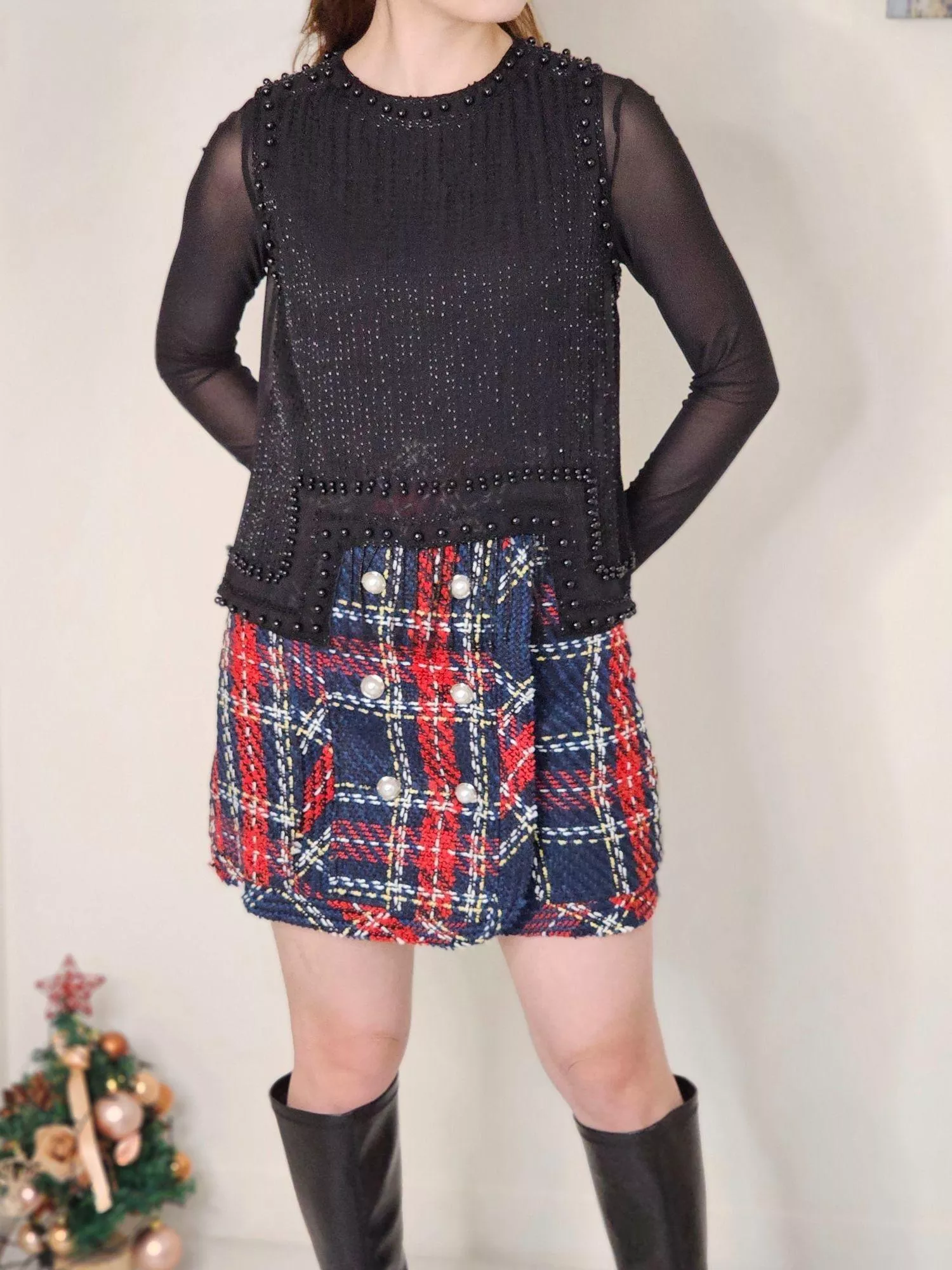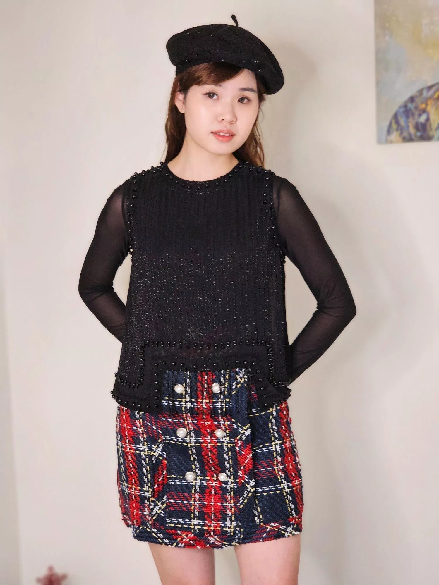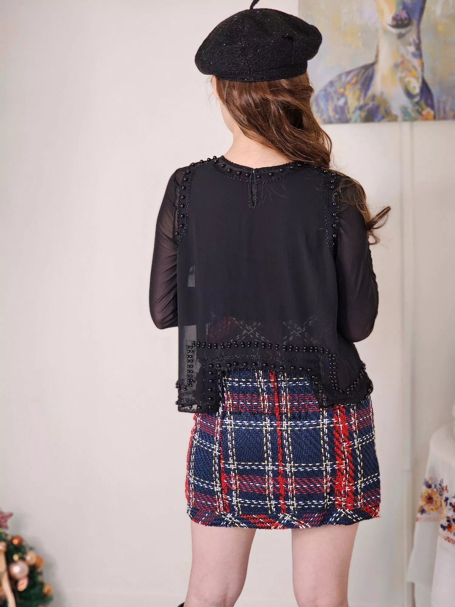 內搭:《薄霧之夜》透膚黑色打底上衣 貨號SJ251103