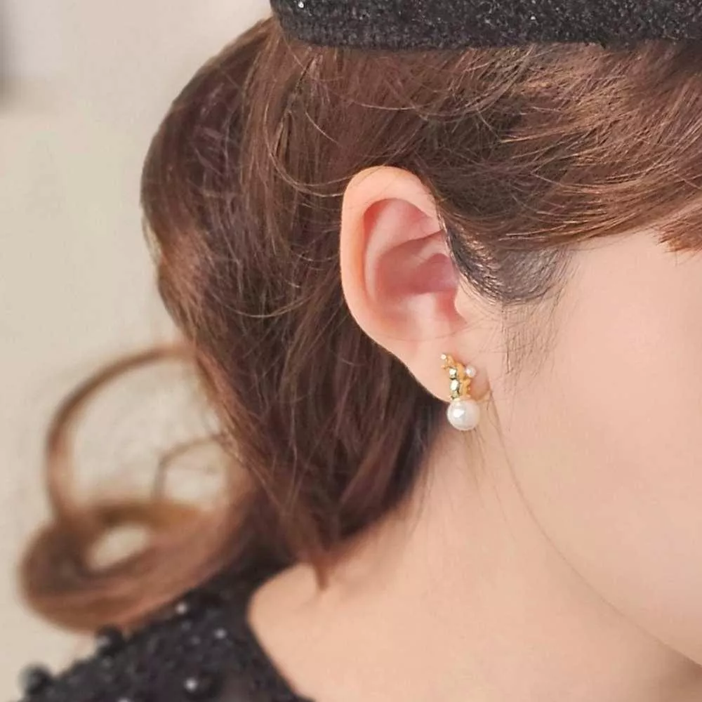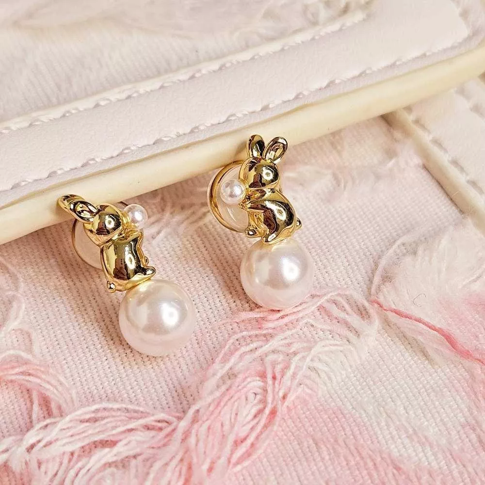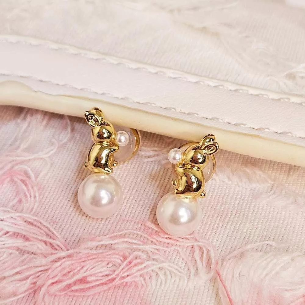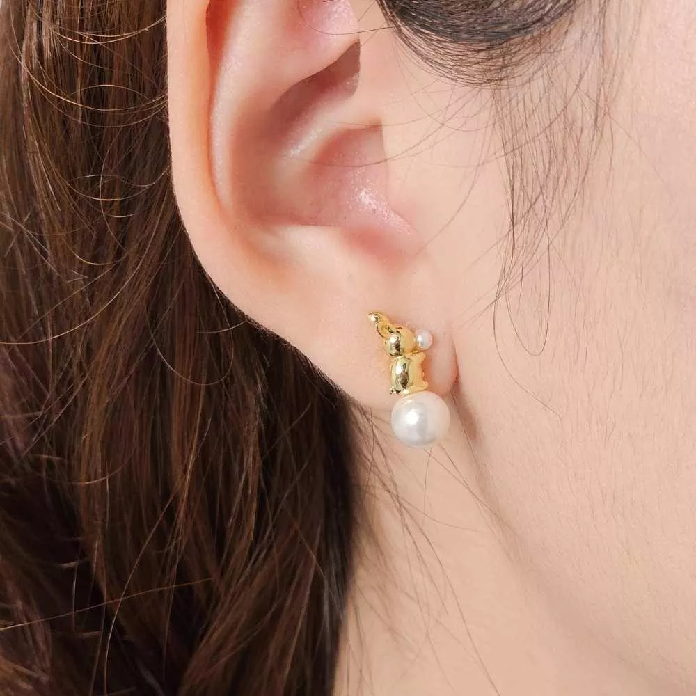 金色兔子立體俏皮,珍珠柔和,戴上後像把可愛帶在耳邊。