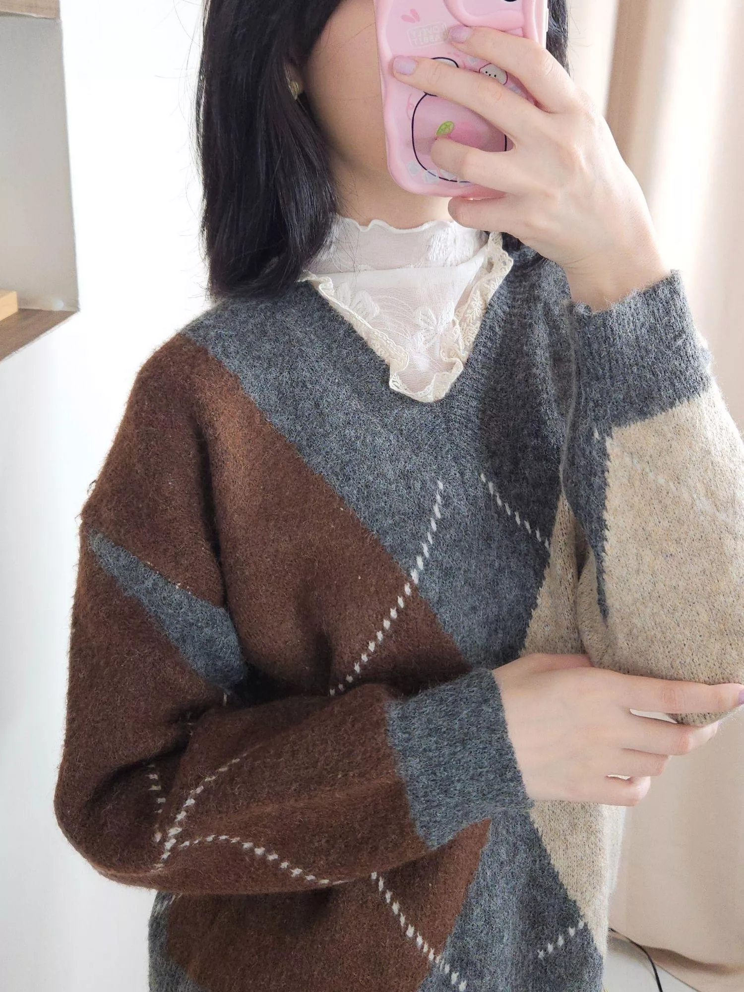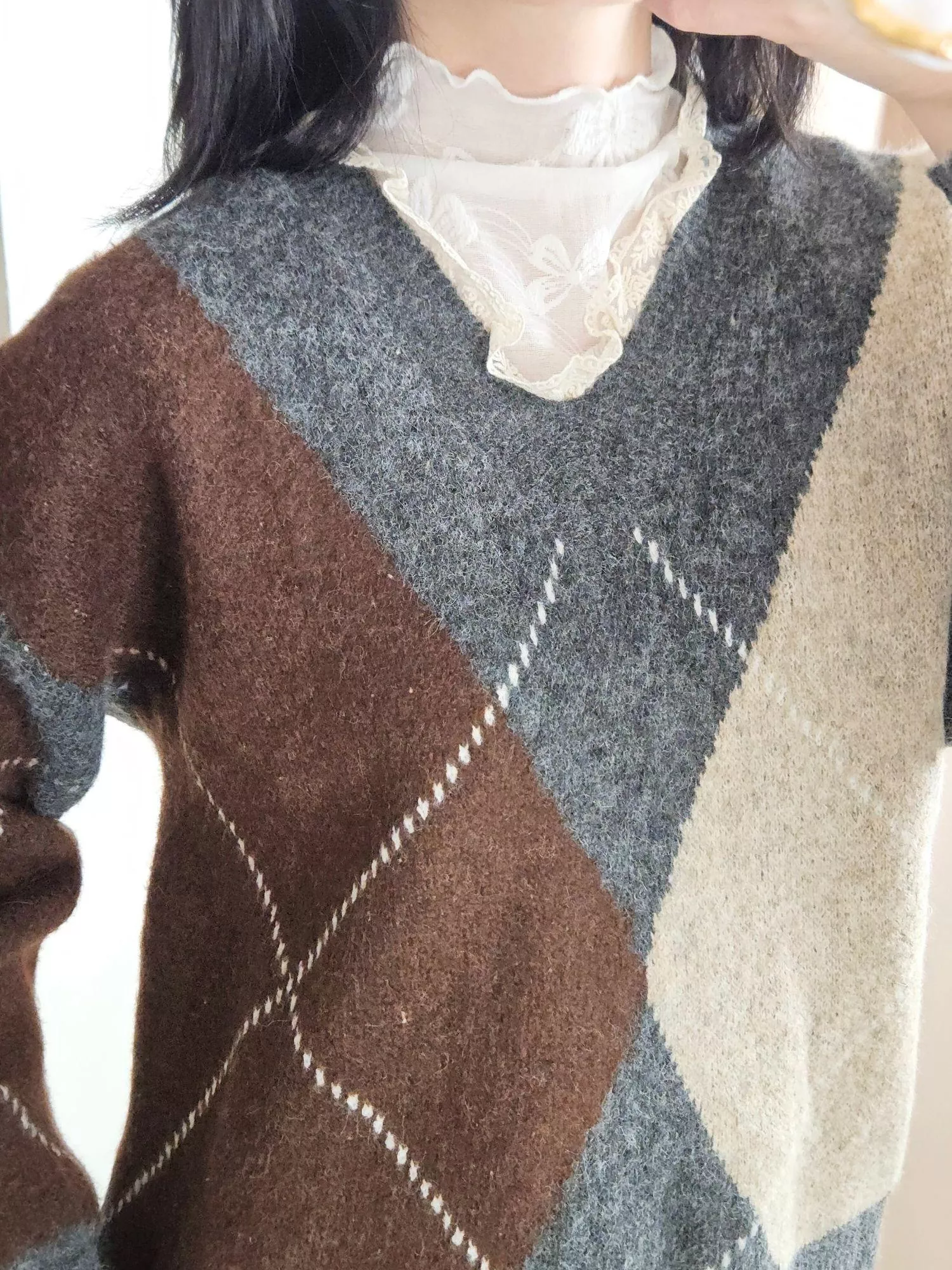 上衣:《紅棕織影》V領針織上衣 貨號SJ250103
