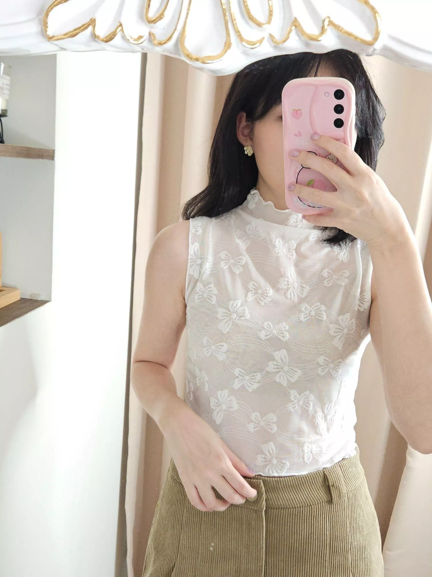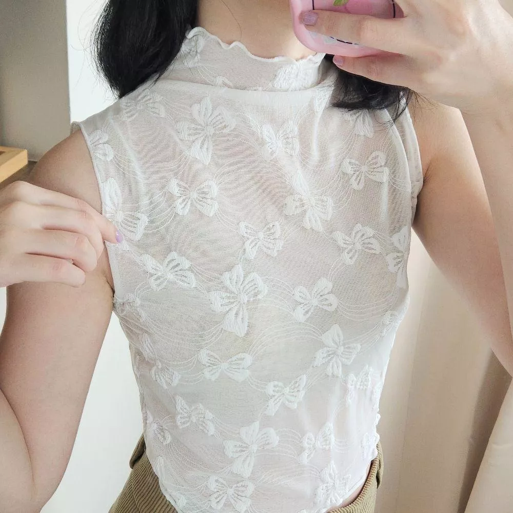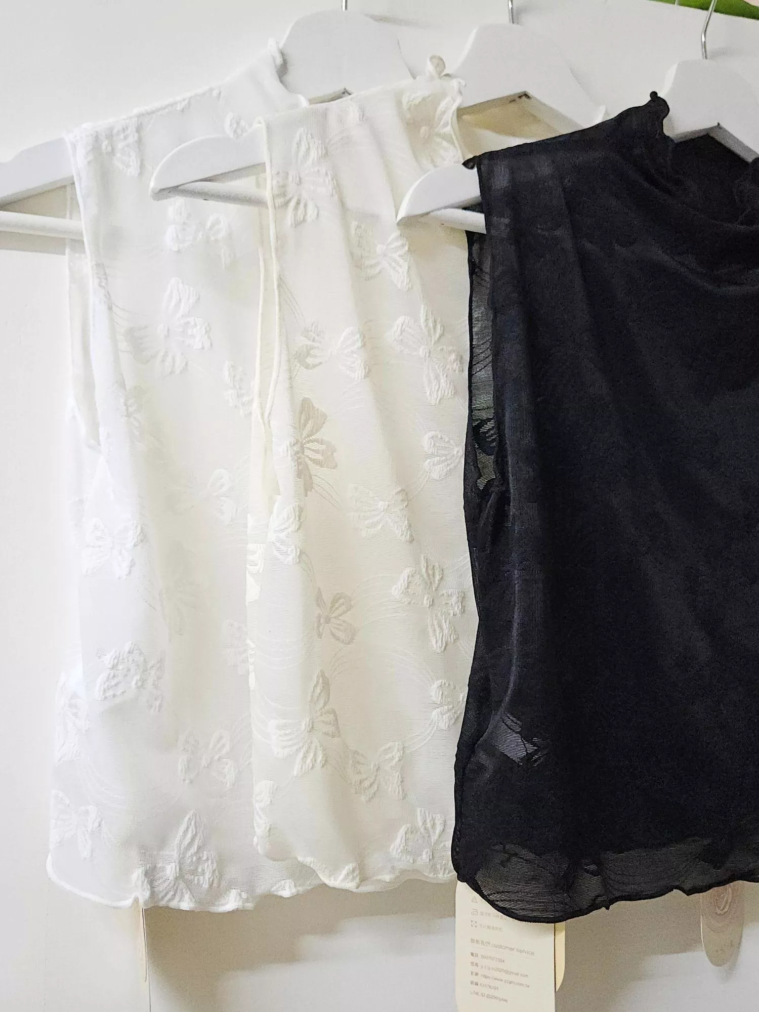 《蝴蝶緹花》立體蝴蝶結高領無袖內搭 杏/白/黑
