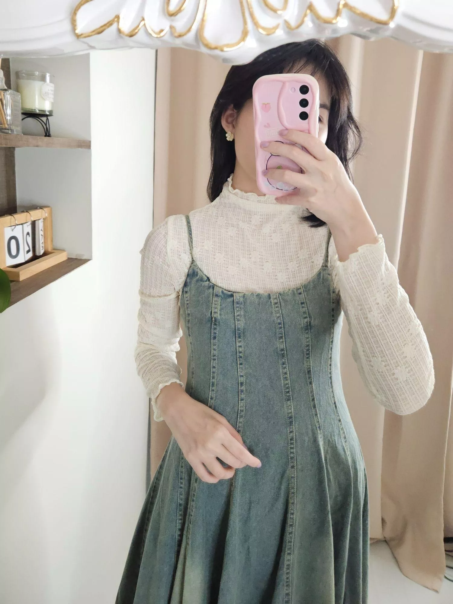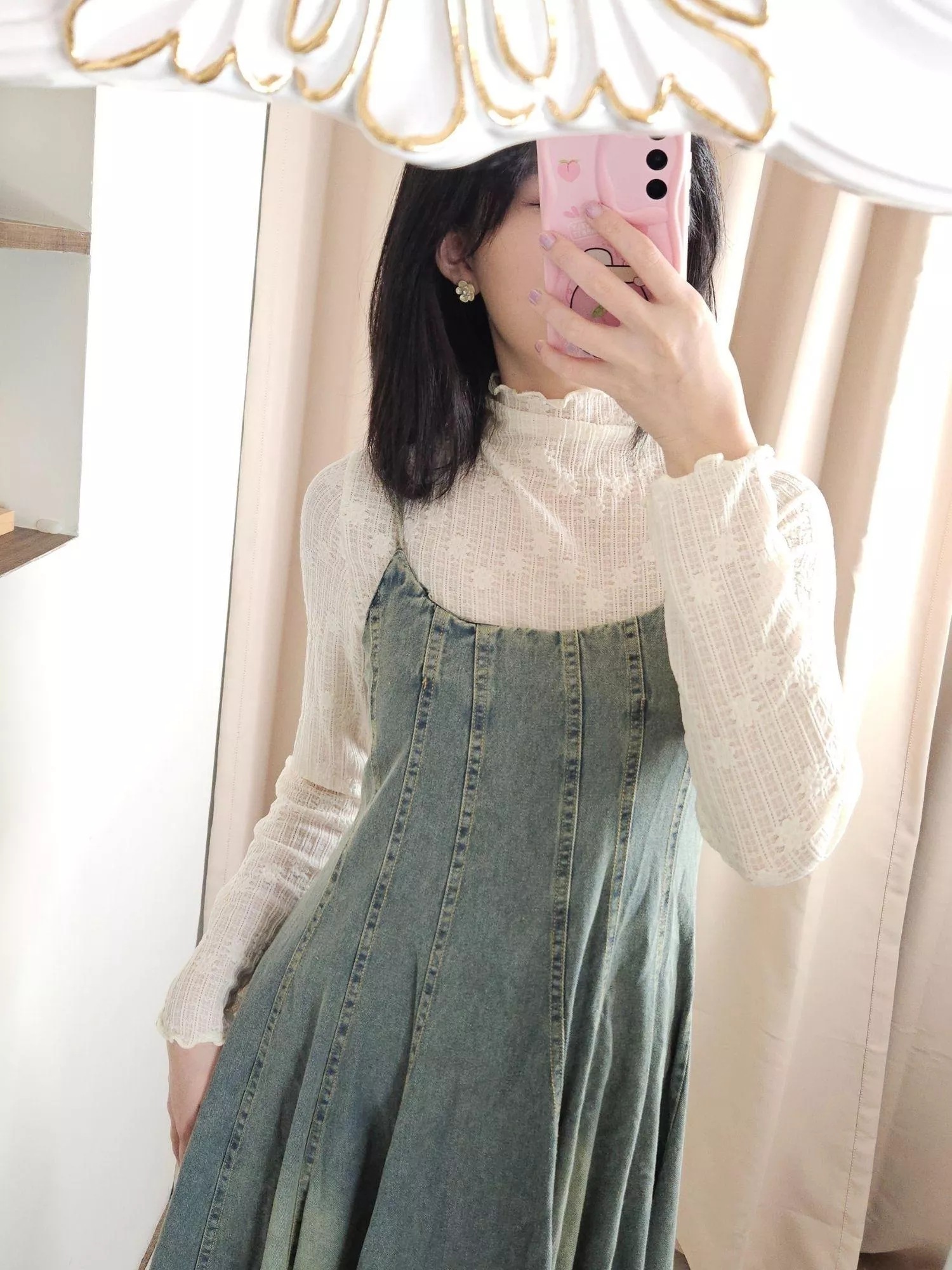 內搭:《冬露綻光》蕾絲透膚加絨打底上衣 貨號SJ251101