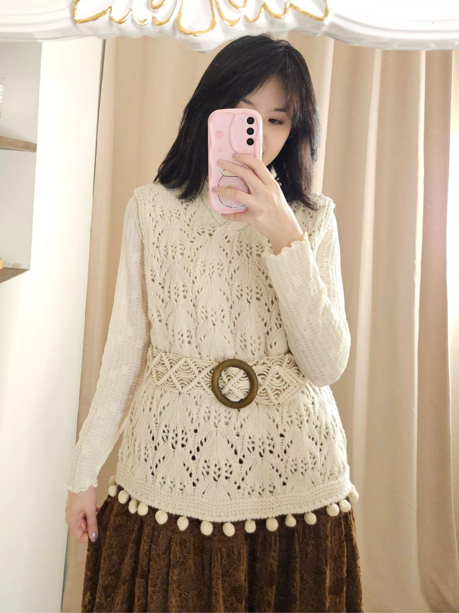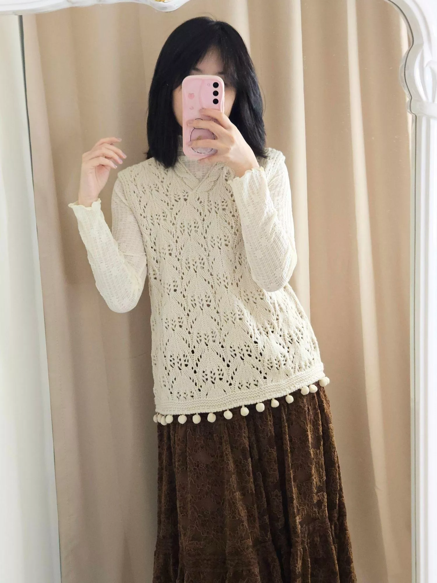 內搭:《溫柔霧光》蕾絲緹花打底上衣 貨號SJ251102
