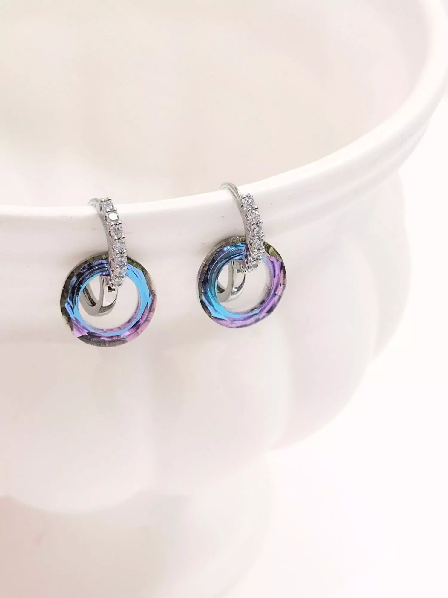 .紫色單環可拆卸,就變成純銀排鑽耳扣囉