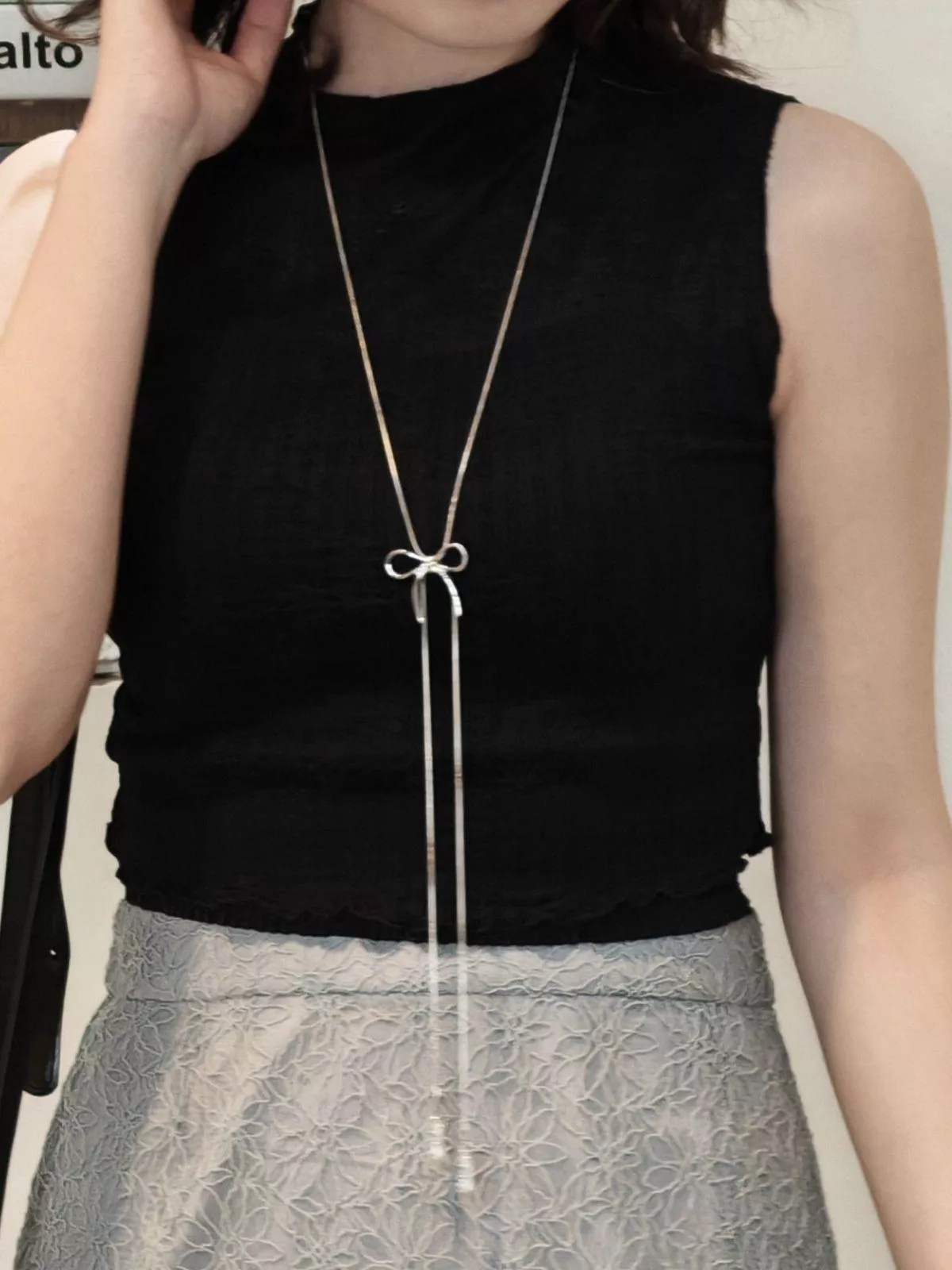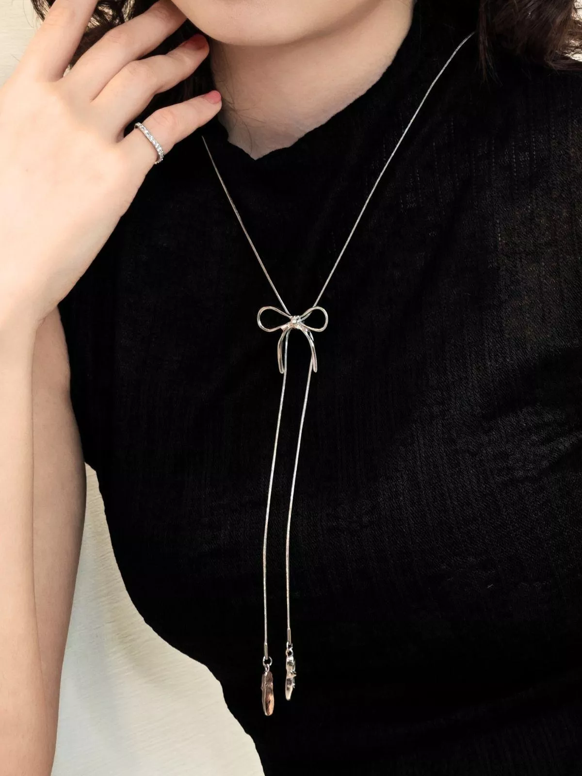 芭蕾舞鞋蝴蝶結絲帶長鍊|浪漫金屬線條・靈動修飾比例