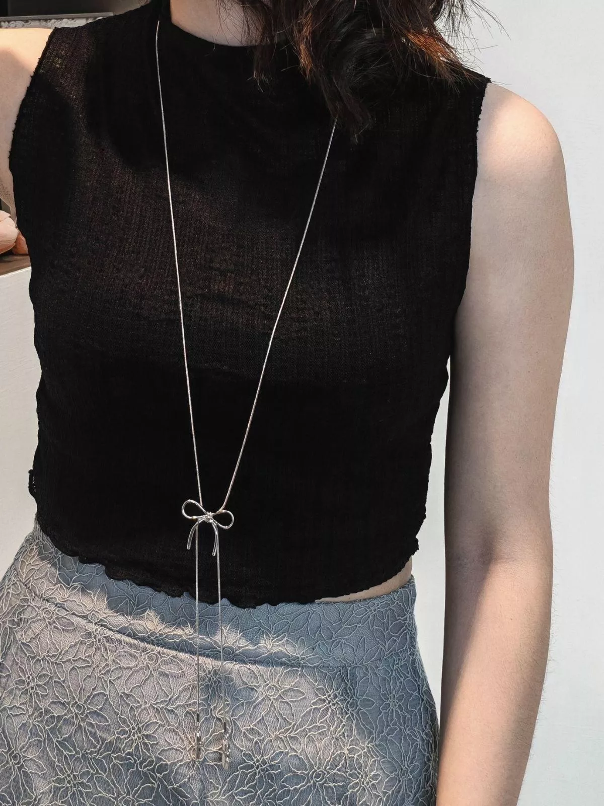 Y 字型的鍊身設計,隨性地垂墜在衣領間,在視覺上自然拉長頸部曲線。