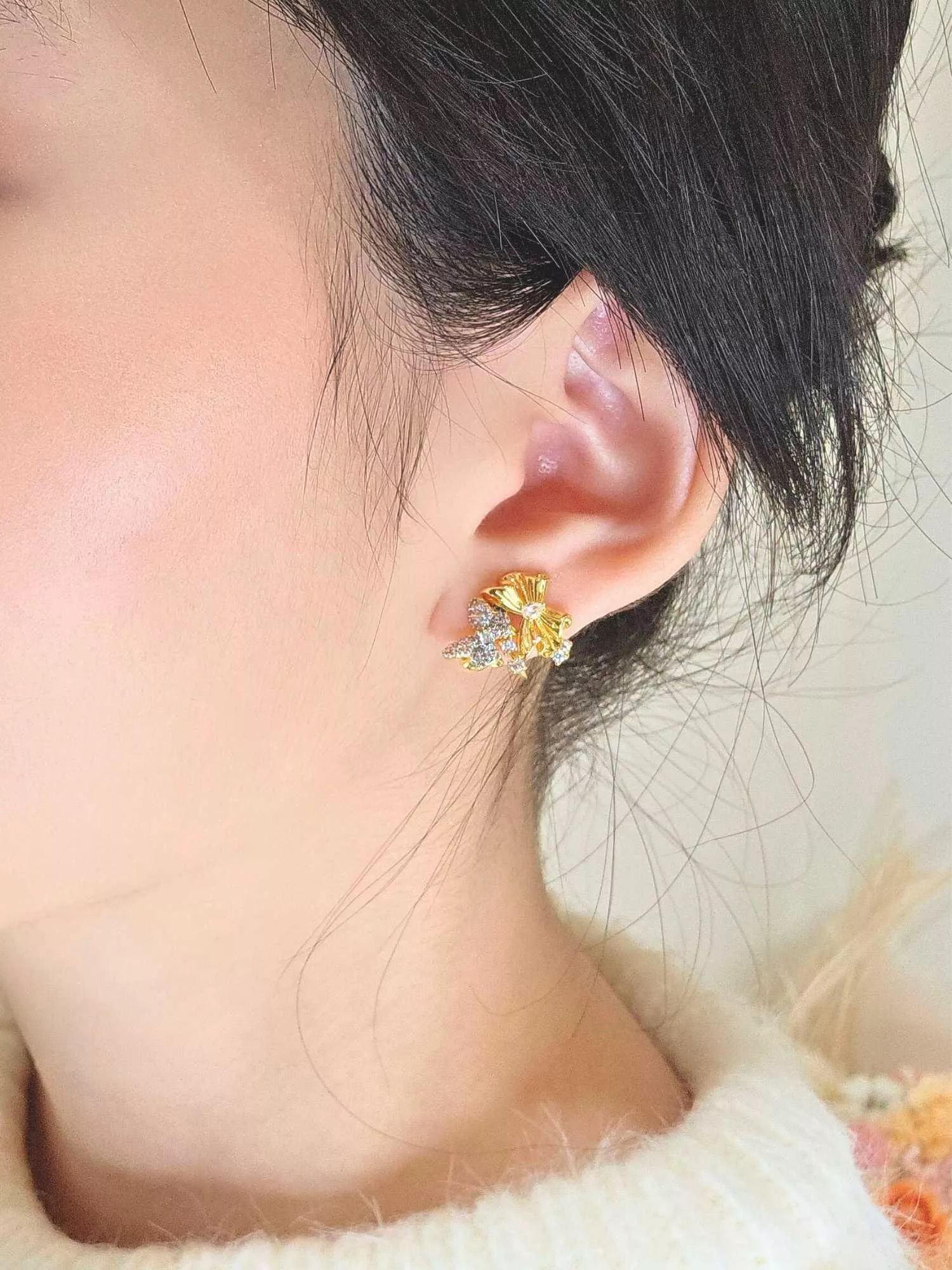 🟡 戴完記得擦一下,讓它恢復閃亮 🧼 每次摘下後,用柔軟乾布輕輕擦拭掉汗水與油脂;耳針處可用酒精棉片消毒清潔,保持乾淨也能避免耳洞過敏。