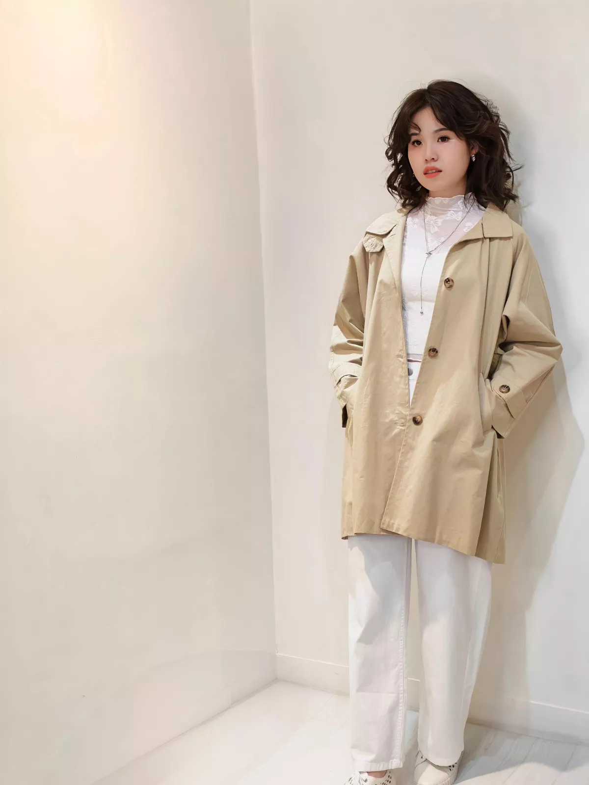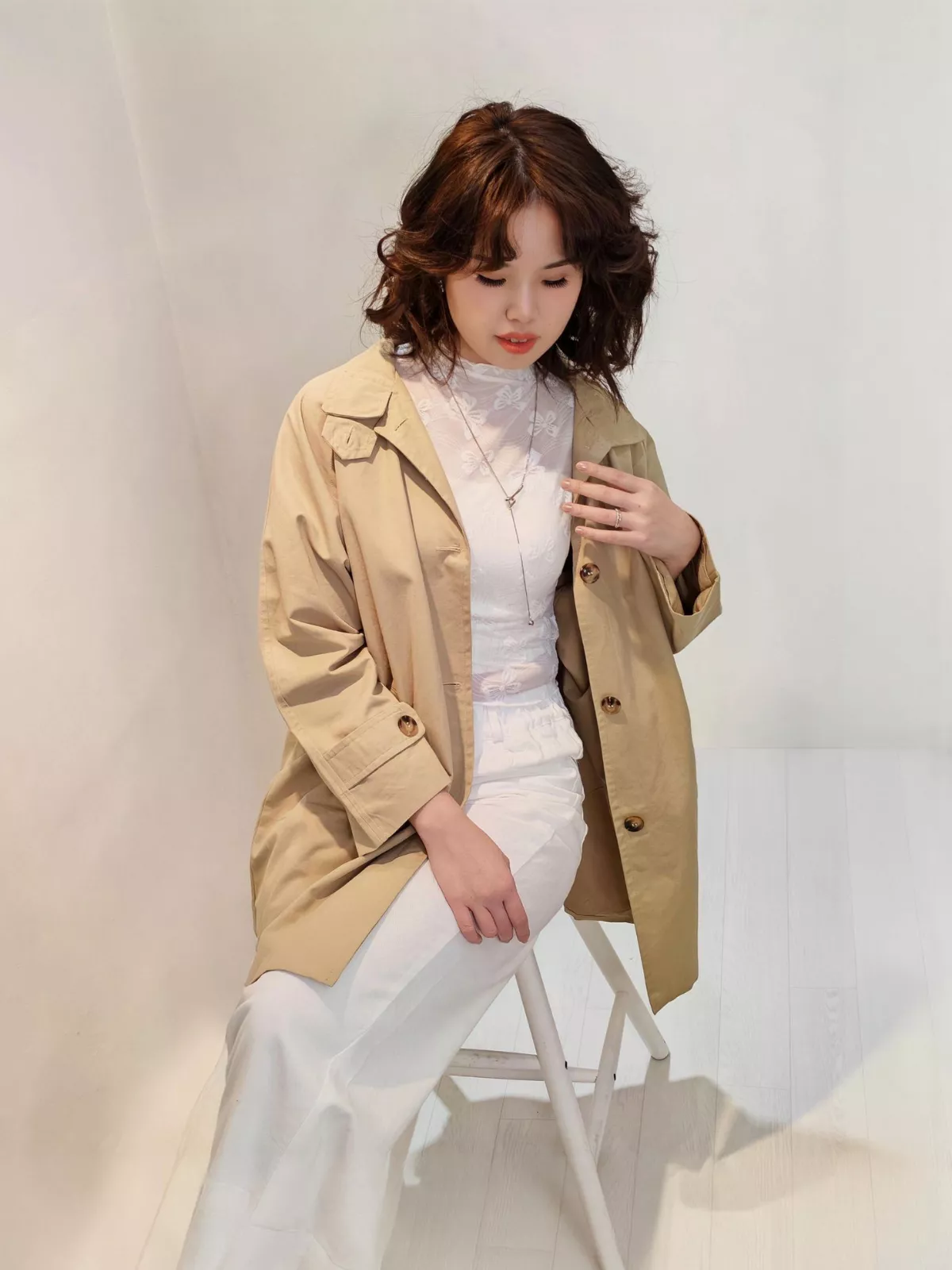 風衣剪裁俐落,搭裙裝或褲裝都優雅。