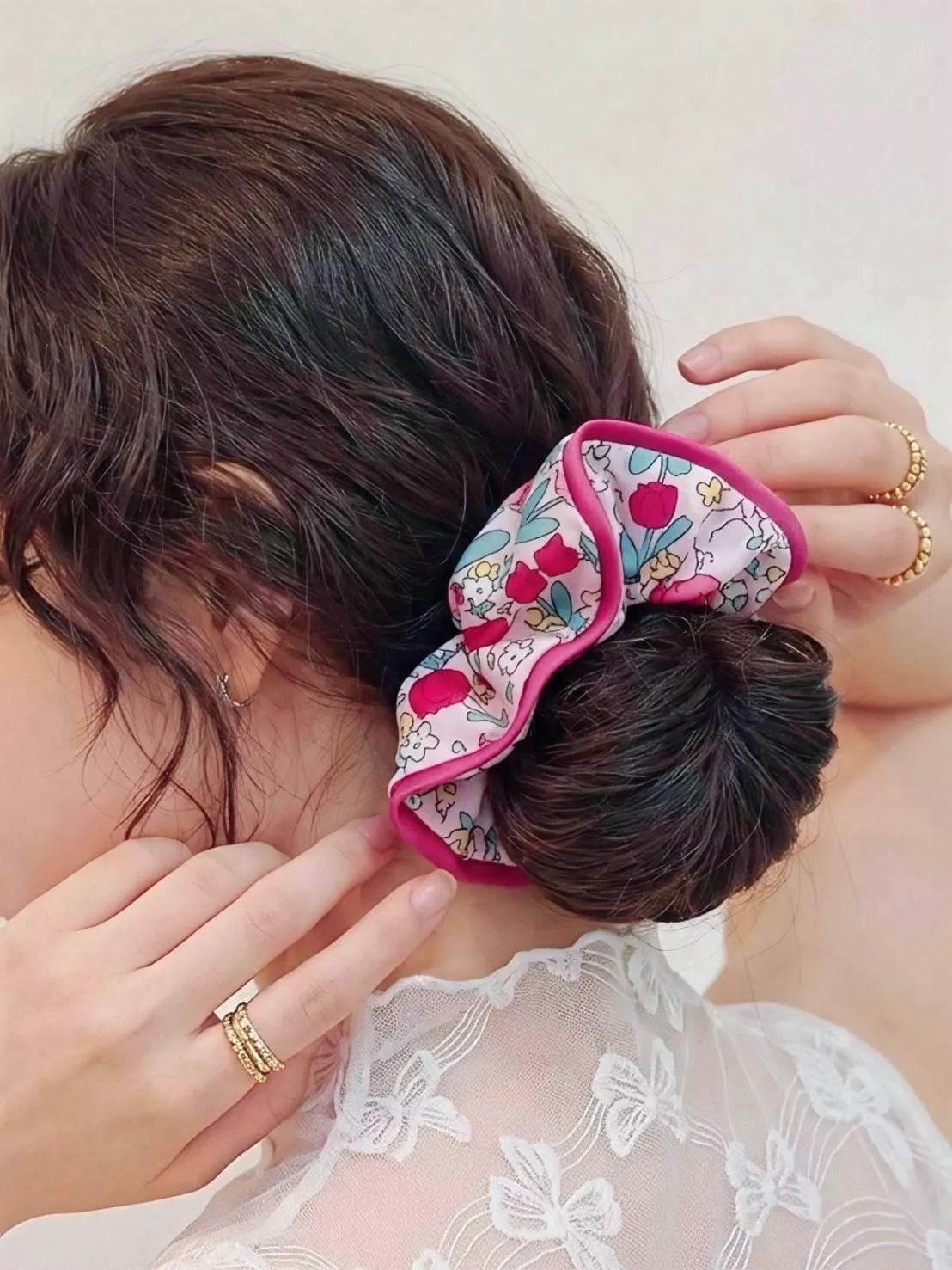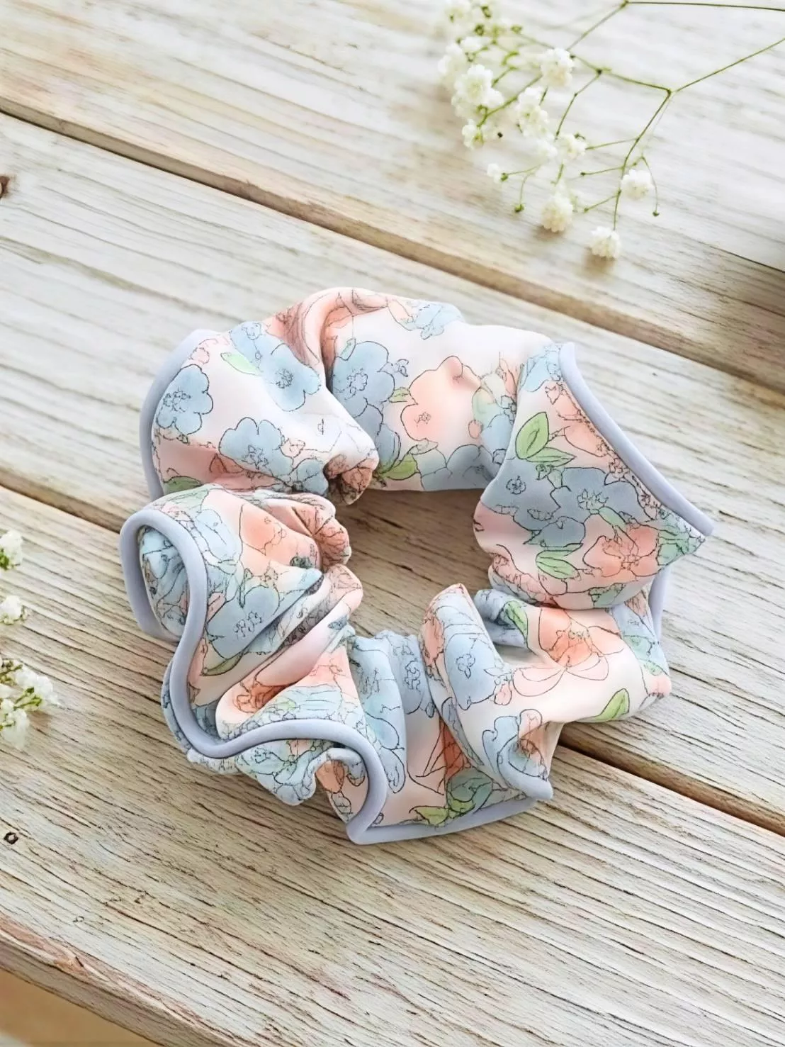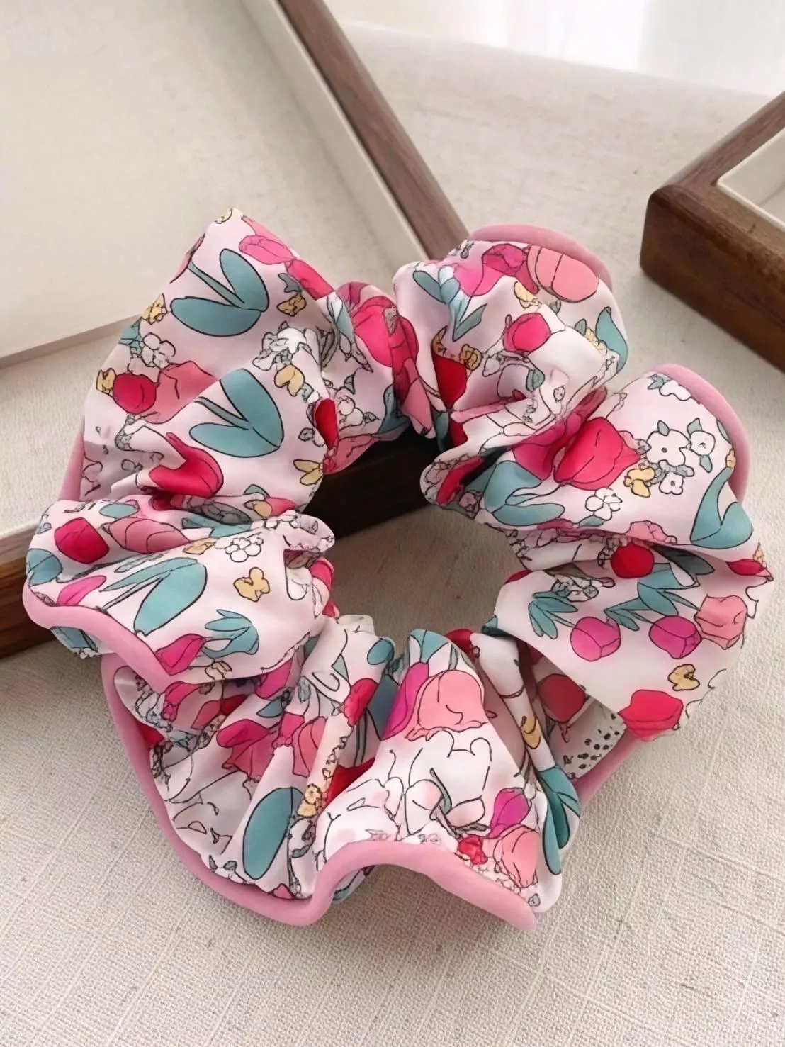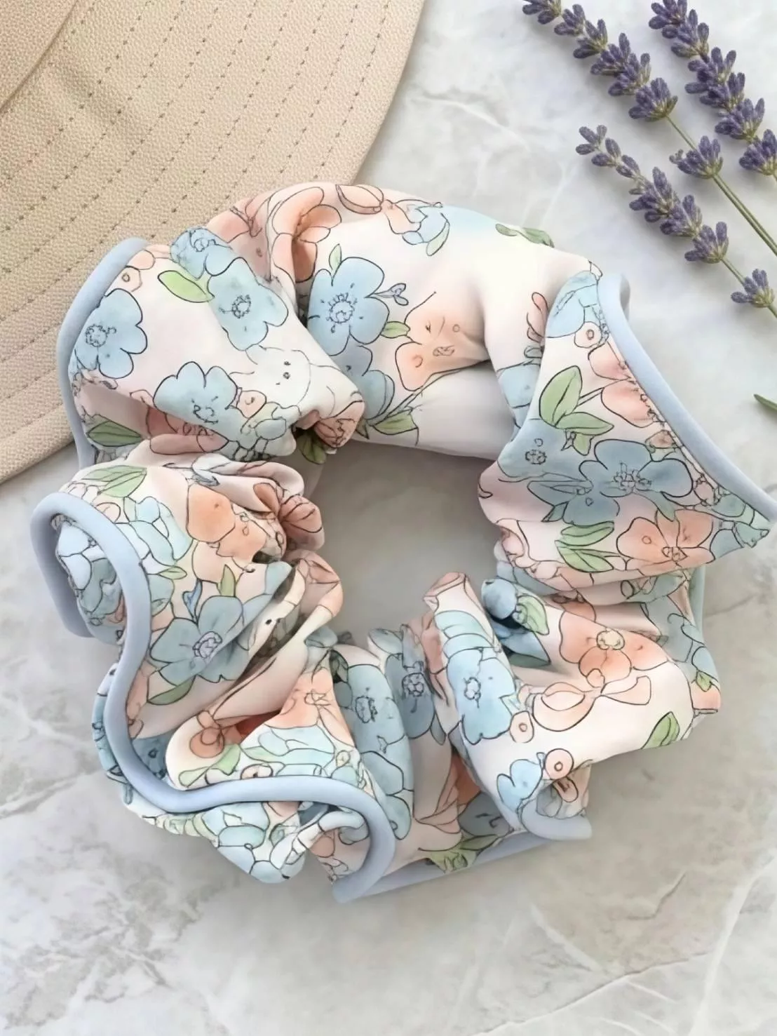-避開陽光直射 請將髮圈平放於陰涼通風處自然陰乾。強烈的陽光直射容易讓精緻的印花褪色,溫柔的風乾才是最好的。